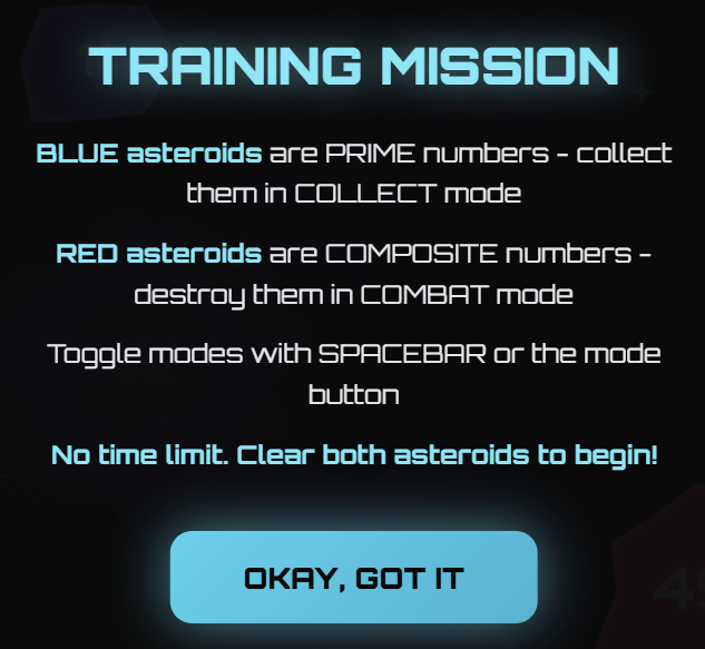 PRIME HUNTER: A space mining economics game where survival depends on recognizing prime numbers.